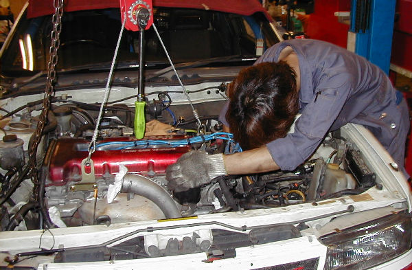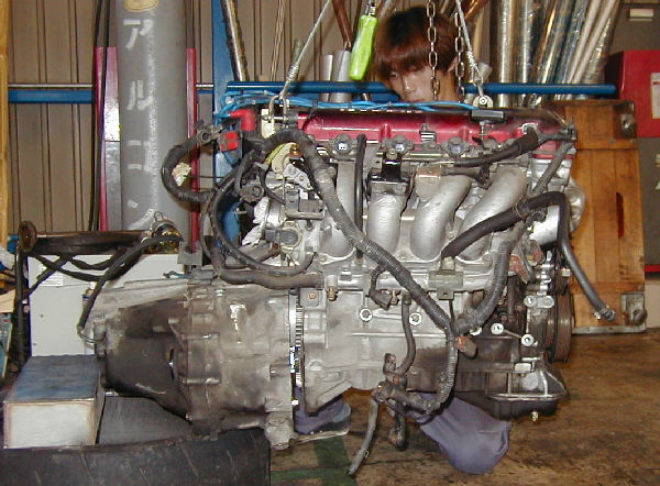 そして、組上がったエンジンASSYを車輌に組み込む準備をする