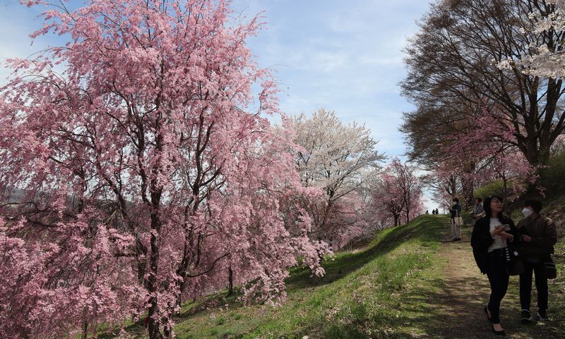 予定通り 今年も小諸へ花見に行ってきました。 去年 駅前ホテルに泊まって快適な旅だったから 今年も同じパターンで 奥さんと次女を連れて向かう。 去年は 懐古園の桜祭りが終わった頃に行ったんだけど 今年は満開の時期を目指して行くことにしたので 懐古園駐車場の混雑が心配だし ホテルは懐古園の隣だから 先に飯綱山公園へ向かう。 ここは小諸紅八重枝垂れが素晴らしい。 おそらく満開はもう少し先だけど それでも 晴れてくれたし絶景絶景。 グルッと散策して 2時過ぎ頃に 本日の宿 GrandCastleホテル小諸へ向かい 駐車場にODYSSEYを駐めてチェックインを済ませ 懐古園へ向かう。 予想通り懐古園の駐車場は大賑わい・・ ホテルに駐めさせてもらって良かった。 懐古園の桜は満開 隣の動物園へ行こうと思っていたら リニューアル中だそうで25日まで休業だと書いてあるので 小諸駅方面へ散策に行く。 駅前にある 停車場ガーデンというカフェで一休みして 駅周辺を散策してからホテルに入る。 夕飯の後 懐古園へ夜桜を見に行こう!と出かけてみると 意外なくらい人が多くて賑わってる。 そして ライトアップされた石垣と桜も綺麗だった これが見られるのは 地元民か宿泊組みの特権だろうなぁ。 そんなわけで 今年も小諸の桜が見られて満足だった。