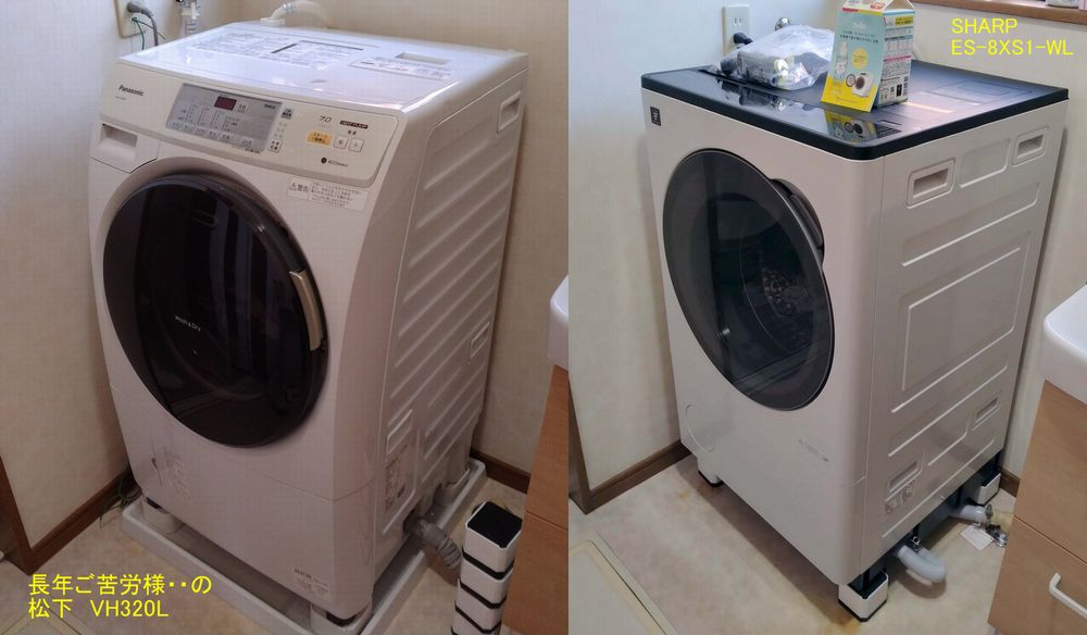 この掲示板の2015/12/8 (火)投稿で 松下の洗濯機 NA-VH320Lを買ったと投稿したんだけど http://tyiz.jp/Bclass/keijiban/bbs.cgi?page=13#1449581539 10年経って 我が家の洗濯機を入れ替えました。 今回の機種は シャープの小型ドラム洗濯機 ES-8XS1-WLと言う機種。 松下のVH320Lは安定していて 大きなトラブルは 買って3年目くらいで制御基板交換(保証修理) 8年目くらいで扉開閉レバーにガタが出て前面ドア交換 洗濯はまだまだ全然快調だったんだけど ここ半年くらいで 乾燥機の能力がガクンと落ちて おそらくはヒートポンプの詰まりだろうなぁ・・と思ったんだけど 構造的に簡単に分解清掃ができなくて 10年使ったし この際 新型を買おうか・・と探してみた。 日本メーカーの小型ドラム洗濯機が ヒートポンプを止めて久しい状況が続いていたので あらためて洗濯機業界を調べてみると 外国メーカーが非常に多くなっていることに驚いた (まあ、松下もシャープも中国製だけど) そんな中 お・・なんだかカッコいいデザインの洗濯機があるな・・ と思ったのが シャープの8XS1と言うモデルで 調べてみれば 小型でヒートポンプ乾燥機搭載で 我が家の条件にピッタリ。 カタログ写真の濃いグレーのヤツがスゴくカッコいいと思ったんだけど ここは奥さんの意思で やっぱり白!ということで 白を買った次第。 ヤマダデンキで多数並んでいる洗濯機の中でも 妙に異彩を放つデザインに思えたんだけど このモデル 表のパネルがプラじゃ無くて鉄板プレスで出来てるんだな。 何はともあれ 見た目で洗濯機を選ぶとは思わなかったけど そこからスペックを調べてみて ずいぶん凝った機種だと分かったので決めた次第だけど それ故 値段は大型モデルと変わらないんだから このモデル 売れないだろうなぁ・・ だって 同サイズのヒーター乾燥のシンプルモデルなら10万円ちょっとで買えるのに こいつは20万円超えるんだから 少人数家族でスペックに拘りが無かったら選ばない機種だろうからな。 電源を入れるとオハヨウだのコンバンハだの喋るし Webに繋がるし妙なアドバイスとかも喋るし まあ、とりあえずは愉快。 洗剤と柔軟剤はタンクに入れておけば水の量に対して自動で投入するし 必要かどうかはともかく 機能満載。 で、メカニズム的にもよく出来ているのか とにかく静かで 洗濯も脱水も非常に振動が少ない。 乾燥もヒートポンプが元気だから 大風量で早々に乾く。 いままでのVH320Lで経験したけど ヒートポンプは構造的に衣類から出るホコリの影響が大きくて 数年で乾燥機の能力が落ちてくるから 5年くらいで分解清掃が必要かもしれない。 その辺を理解した上で また、10年くらいは上手く使えると良いな・・と思う。