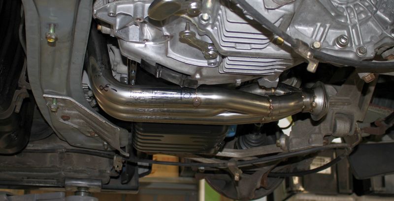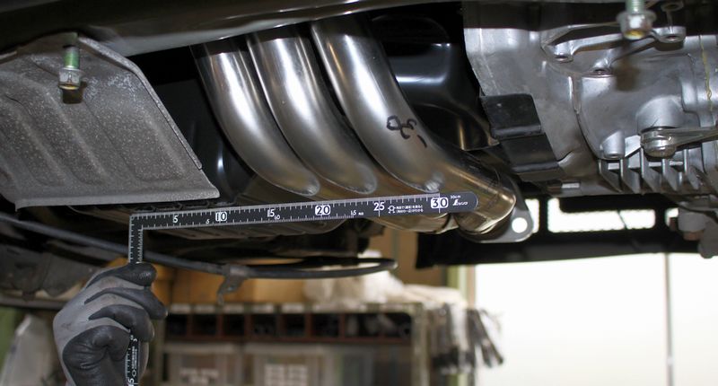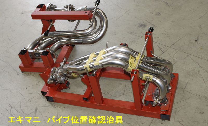 フロントエキマニ集合部が フレームより35ミリも低いんですか? それはつまり オイルパンよりもかなり路面に近いと言うことですよね? そりゃあ 出来が悪いというか考え無しに作っている製品だろうから 使い続けるのはいかがなモノかと思います。 エキマニは ステンレスパイプの曲げと溶接で組み立てられたモノで それ自体がある程度の柔軟性を持っていますが 路面や段差などに当たったらひとたまりも無いので 出来るだけロードクリアランスは保つように作るのが当然だと思う。 エキマニを路面に強くヒットした場合 現実問題 エンジンそのものにダメージは至らないだろうけど パイプが割れれば大きな排気漏れが始まるし 低速トルクダウンと爆音で走行困難になるし 割れて変形したエキマニの修理は大変だし 絶対路面に当てないように 車高を上げて走るしかないと思う エキマニが取り付けられているのはシリンダーヘッドで 8ミリのスタッドボルト7本ですからね。 決して強度が高い部分じゃあ無いから 力がかかる方向によっては 何かダメージが出るかも・・知れませんね。 上の写真は うちのエキマニを試作位置決めしていた時のモノですが 地上高を確保するため パイプがオイルパンより低くならないように位置を決めていきます。 それでも 職人芸の少量生産で組み立てていくから誤差は確実に生じるもので 完成した製品が重要ポイントで悪い方向にズレていないか 位置決め治具を使って完成確認しています。 だから オイルパンより著しく路面に近い・・という造りが そもそも疑問ですね。