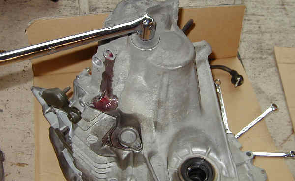 ミッションケース合わせ面に液体ガスケットを塗る