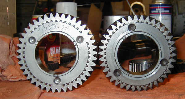 カウンター側2速ギア比較 左が国内仕様 やはり見た目に大きい。