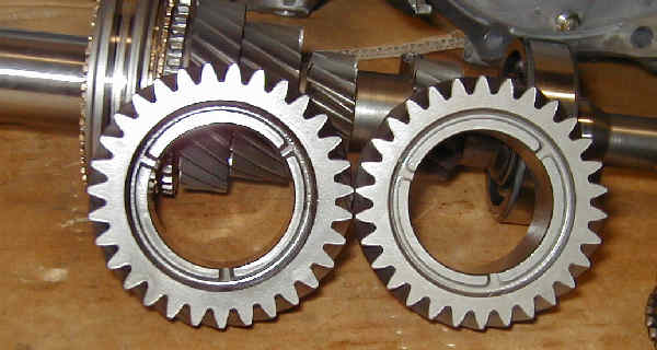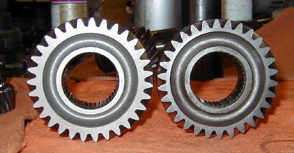 メインシャフト3速ギア比較 右がアキュラ用 当然アキュラの方が大きい。